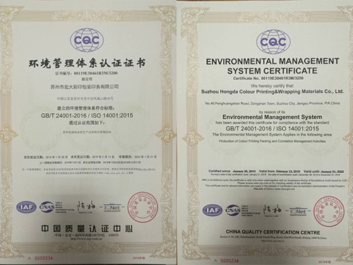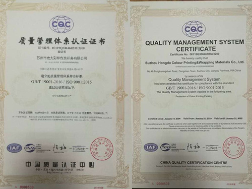 honor_Suzhou Hongda Color Printing & Wrapping Materials Co., Ltd.